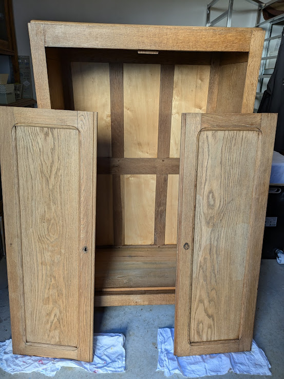 Commande client : Valorisation d’un confiturier ancien avec huil’soie origine et peinture teinte “Autan” de chez Camaelle