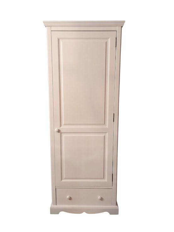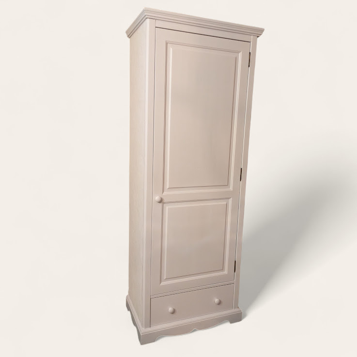 Armoire Patine au glacis, style cerusé, Teinte “nuage”, effet ombré sur les arêtes – Création client
